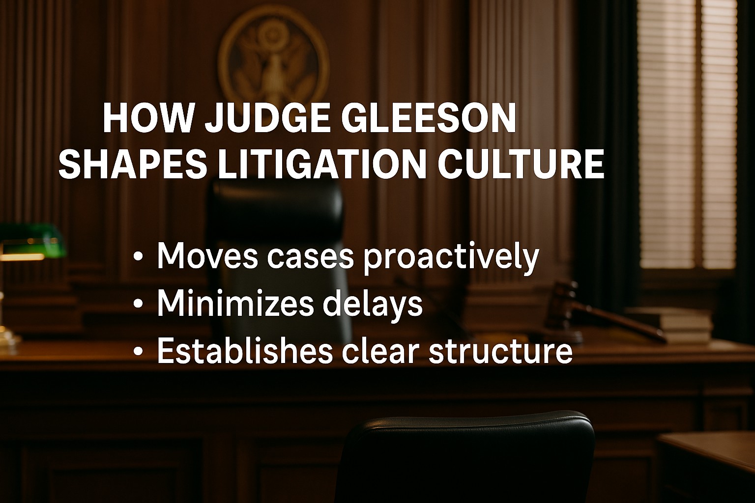 Judges set the tone for their courtrooms. Judge Gleeson’s tone is active. He moves cases, He avoids waste He creates a structure where parties must act, not stall. This shapes how lawyers behave. It also affects how firms choose where to file.